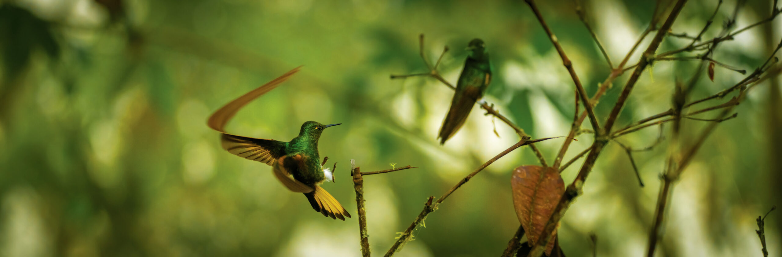buff-tailed coronet in flight – banner RGB